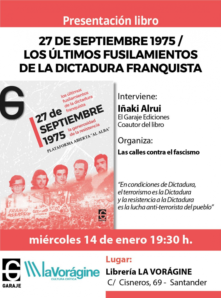 El Garaje Ediciones Editorial casi nómada, editorial portátil… El Garaje Ediciones S. L. es sin duda una de las más pequeñas editoriales presentes en el mercado. No obstante, y pese a que pueda resultar inverosímil, El Garaje vende libros. Y aun podríamos afirmar que vende bastante, que la relación entre dimensión de empresa y dimensión de ventas es asombrosamente favorable a la segunda (dimensión). ¿Por qué? Porque los libros de El Garaje son interesantes unos, muy entretenidos todos y no pocos sumamente polémicos. Desde el documente histórico, la memoria disidente o el libro-artefacto tocapelotas e irrespetuoso hasta la novela negra en la que, como en la vida misma, no hay policía bueno. Por todo eso y más, El Garaje, editorial portátil, casi nómada, vende. Vende y gusta.